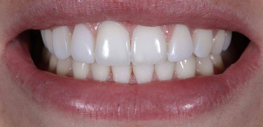 veneers – before and afterVeneers can improve the colour, shape and position of teeth. A precise shade of porcelain can be chosen to give the right colour to improve a single discoloured or stained tooth or to lighten front teeth (usually the upper ones) generally. A veneer can make a chipped tooth look intact again. The porcelain covers the whole of the front of the tooth with a thicker section replacing the broken part. Veneers can also be used to close small gaps, when orthodontics (braces) are not suitable. If one tooth is slightly out of position, a veneer can sometimes be fitted to bring it into line with the others.