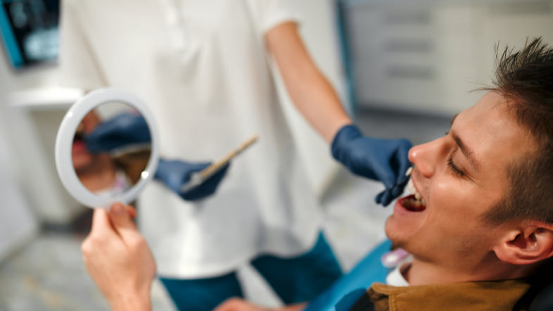A veneer takes at least two visits; the first to prepare the tooth and to match the shade, and the second to fit it. Before bonding it in place, your dentist will show you the veneer on your tooth to make sure you are happy with it. Bonding a veneer in place is done with a special adhesive, which holds it firmly on the tooth.
